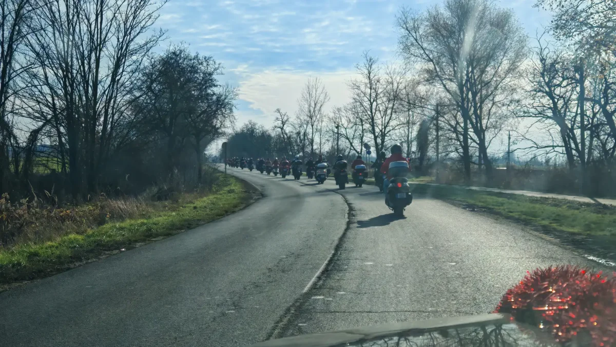 A Nyíregyházi találkozóponttól együtt gurultunk a rendezvény gyülekező pontjára Tiszavasváriba, a Klub kávéházhoz ahol csatlakoztunk a szép számmal megjelent motoros Mikulásokhoz.