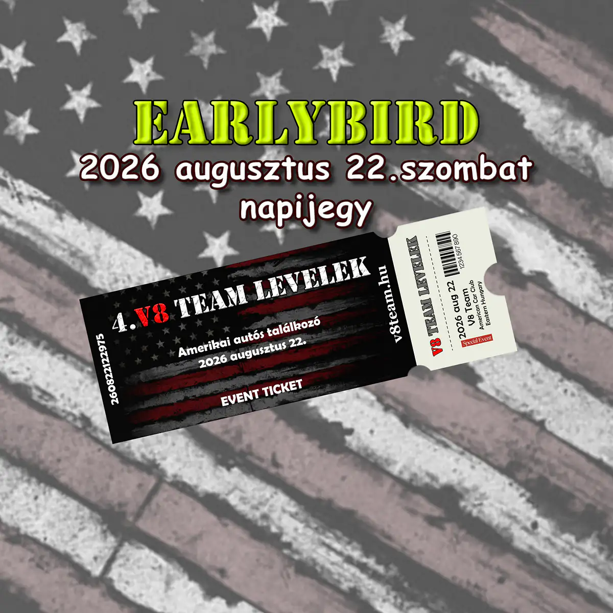 4.V8 Team Levelek Amerikai autóstalálkozó napijegy.